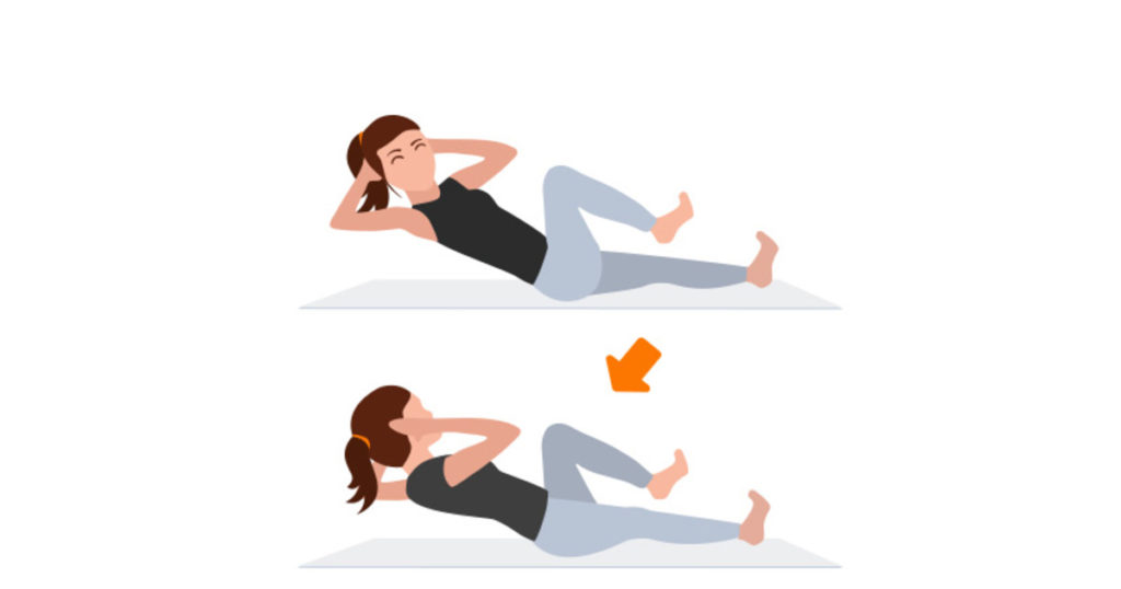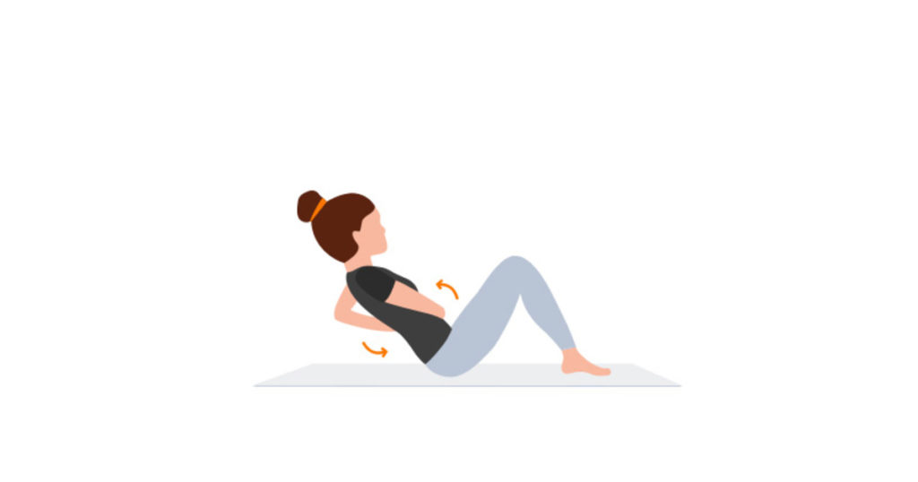 - Оторвите спину от пола, держа поясницу прижатой к полу.