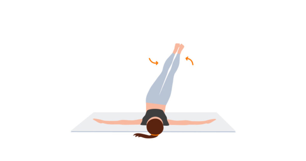 - Поднимите вверх прямые ноги. Держите их вместе.
