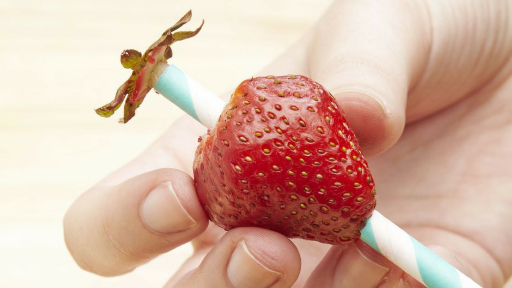 2. Чистите клубнику с помощью коктейльной трубочки