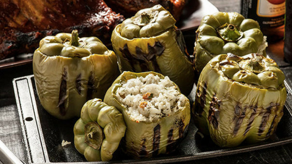 Очистите перцы от семян и сбрызните растительным маслом и отправьте в духовку запекаться. В это время, натрите брынзу на мелкой терке, нарежьте мелко укроп, извлеките мякоть из помидоров. Смешайте мякоть помидоров с брынзой и укропом. Достаньте размягчившиеся перцы из духовки и начините фаршем из брынзы и помидоров. Каждый перец обваляйте в муке, затем обмакните в яйцо, панировку и обжарьте в сливочном масле. Подавайте перцы на стол с соусом из турецкого йогурта или сметаны.