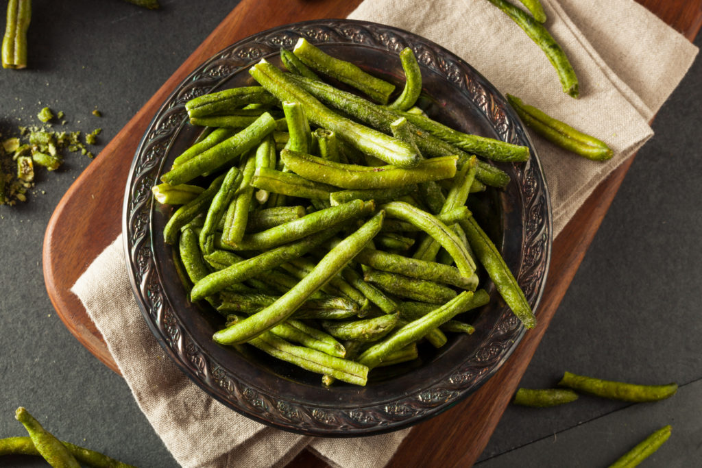 Необычный вариант полезного фастфуда. Запекайте стручковую фасоль 15 минут при 220 градусах, подавайте с пряным соусом сальса.