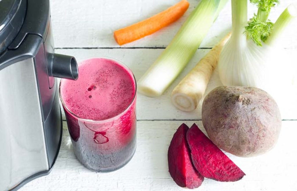 - Сделайте в соковыжималке сок из яблок и свеклы;
