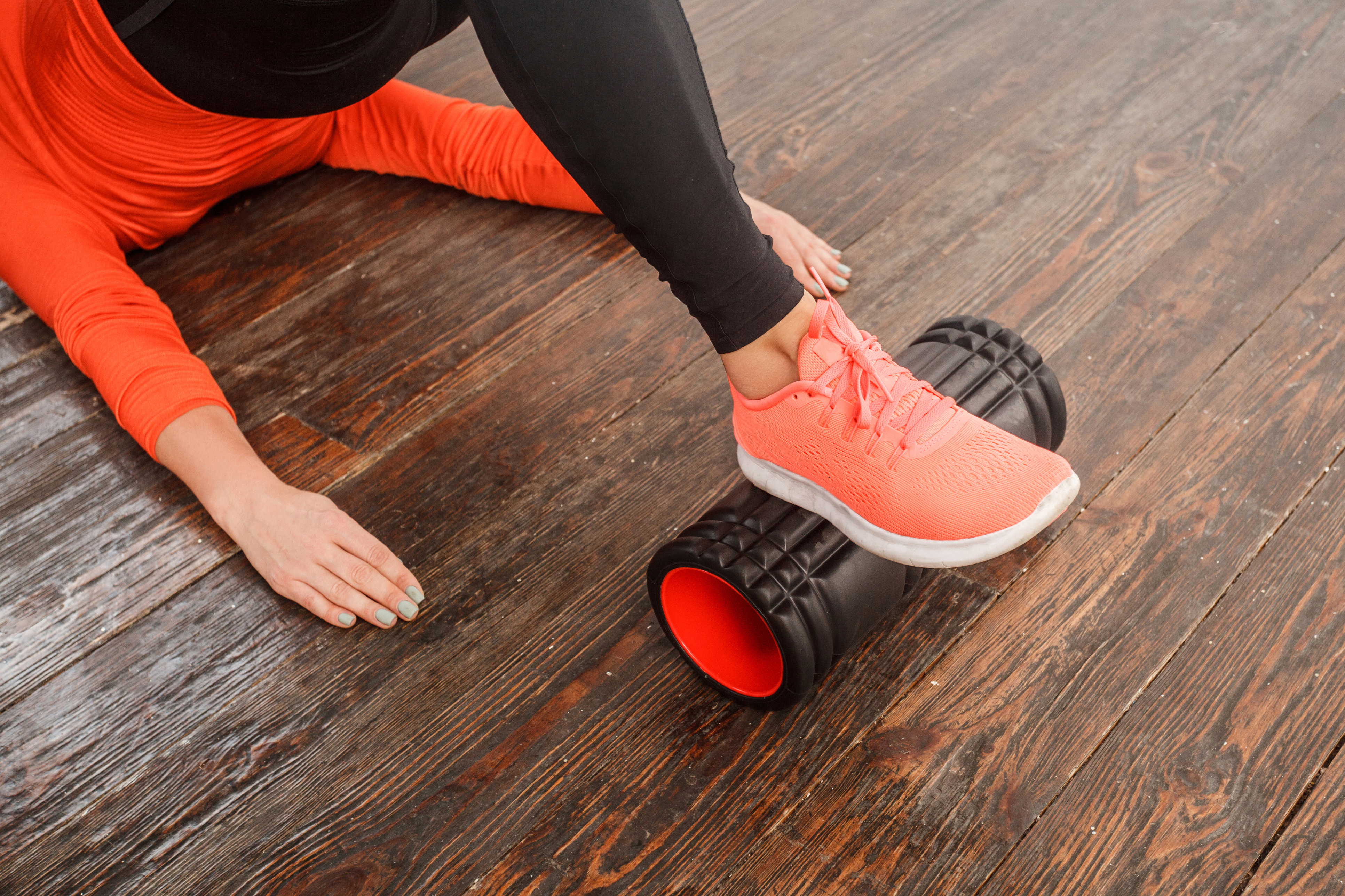 Выполнение: сядьте на пол, выпрямите ноги, руки поставьте сзади. Поместите валик под икры и начинайте делать медленные движения по задней части ног вверх и вниз, от колен до лодыжек.