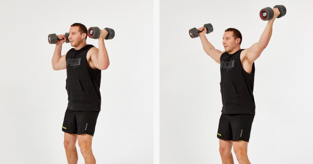 Для того чтобы прокачать плечи и надостную мышцу в частности, очень хорошо подойдет подъем гантелей над головой. Поднимайте и разводите гантели в стороны так, чтобы ваше тело напоминало по форме букву «Y». При этом старайтесь делать это медленно, так как слишком быстрые движения дадут излишнюю нагрузку на плечевые суставы.