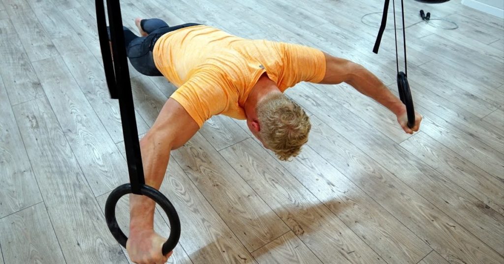 Отжимания в кольцах — одно из лучших упражнений для проработки грудных мышц. Схватитесь руками за кроссфит-кольца, примите позицию для выполнения планки и начните опускать торс вниз, разводя руки в стороны. Поначалу сделать все правильно будет очень сложно, но эффект данного упражнения просто потрясающий.