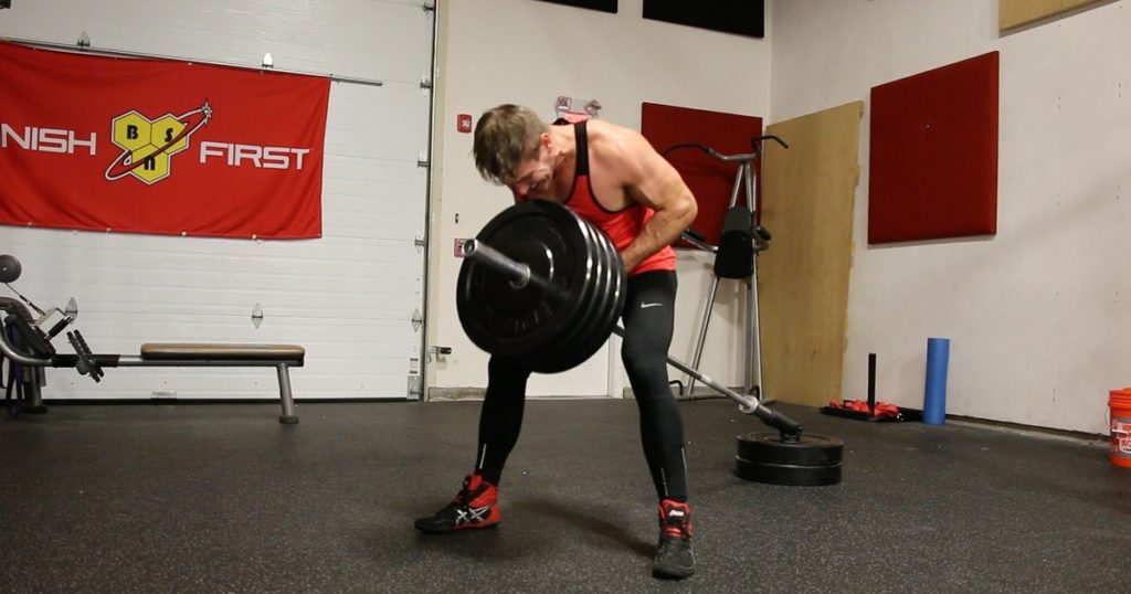 Это упражнение дает тот же эффект, что и классическая тяга к поясу, но при этом намного меньше травмирует спину. Нагрузите один конец штанги необходимым весом, а второй поставьте в угол комнаты. Перешагните через штангу так, чтобы ее нагруженный конец оказался у вас между ног, поднимите его и держите на вытянутых руках. Тяните конец штанги к поясу, сгибая руки в локтях.