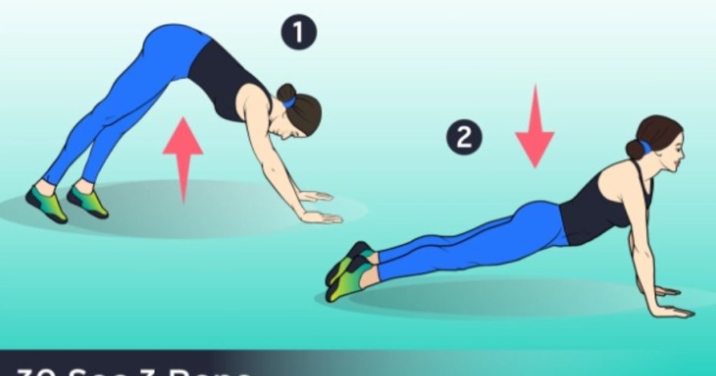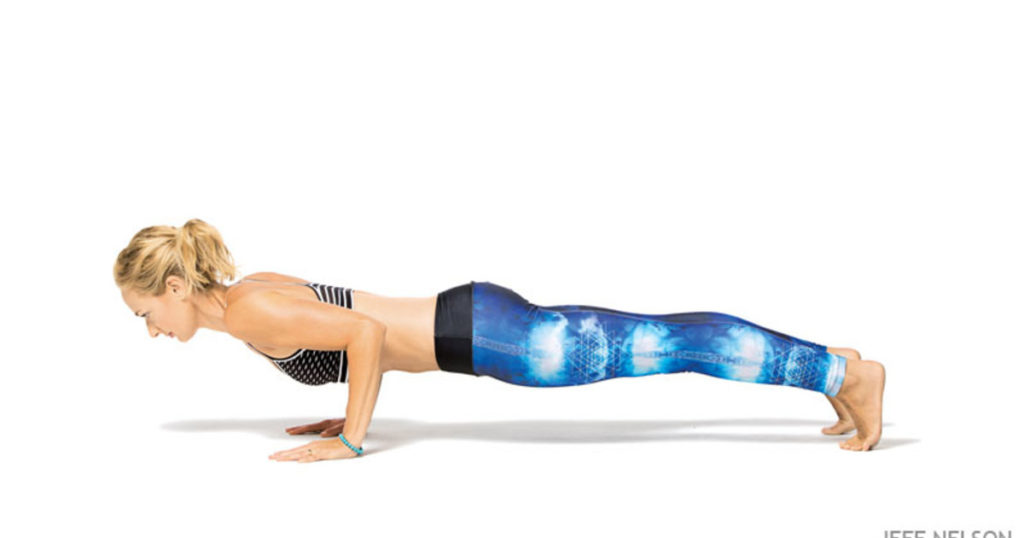 Это суперупражнение подарит силу вашим запястьям, рукам, прессу и пояснице. Если поначалу вам будет сложно держать свой вес, начните выполнять движение на коленях, а не носках.