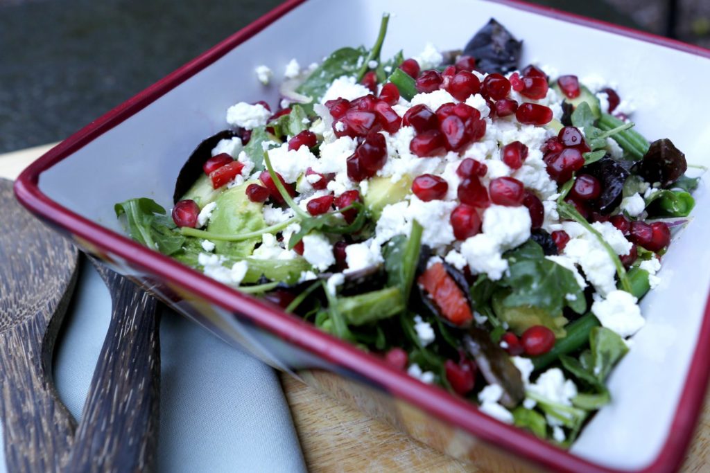 - Три горсти смеси салатных листьев (айсберг, фризе, руккола, радиккьо)
