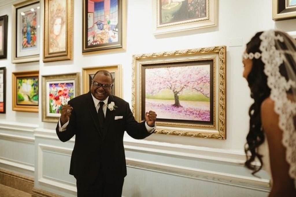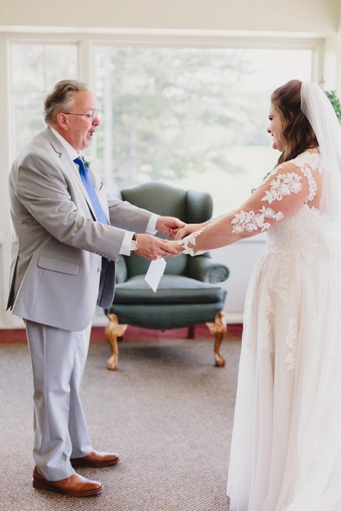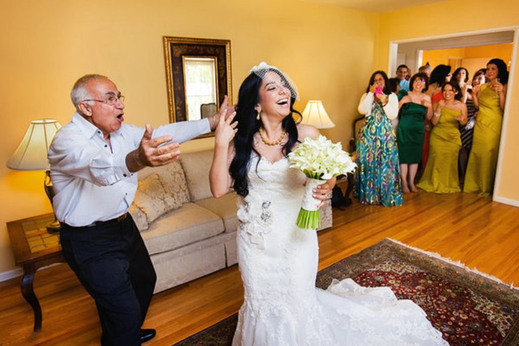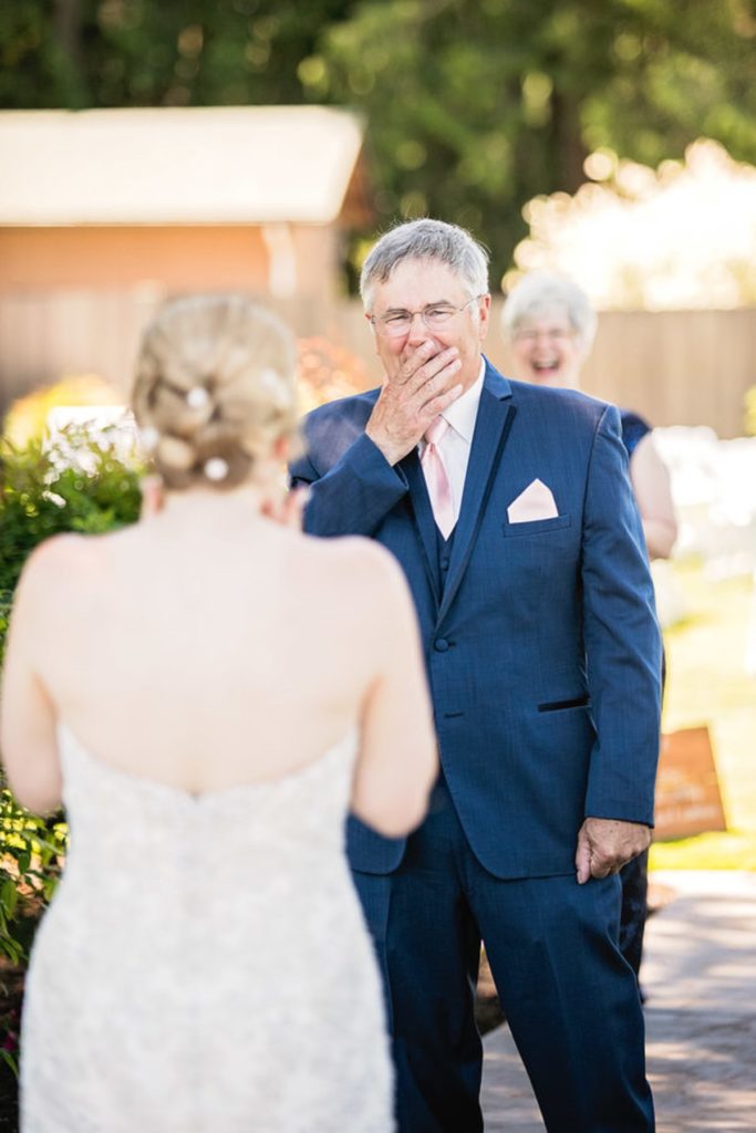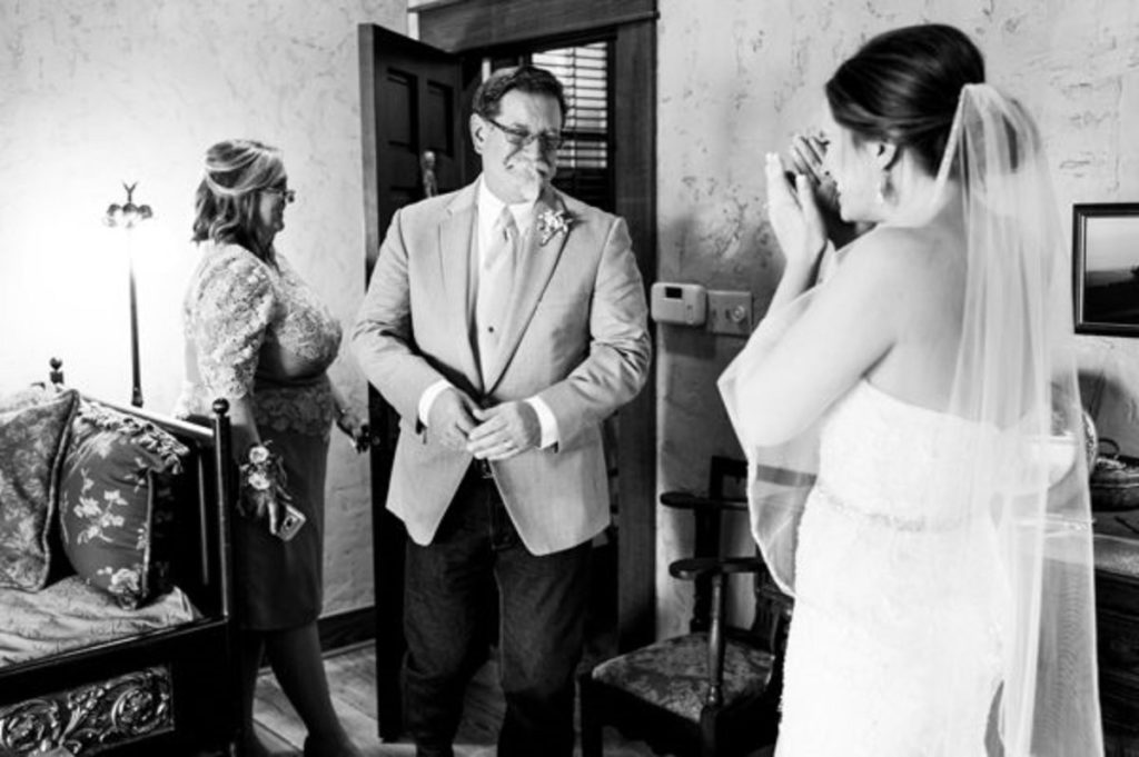 В важный день многие невесты делают фотографии первого впечатления родителей, которые впервые видят их в подвенечном платье. И, как и следовало ожидать, все снимки очень эмоциональные.