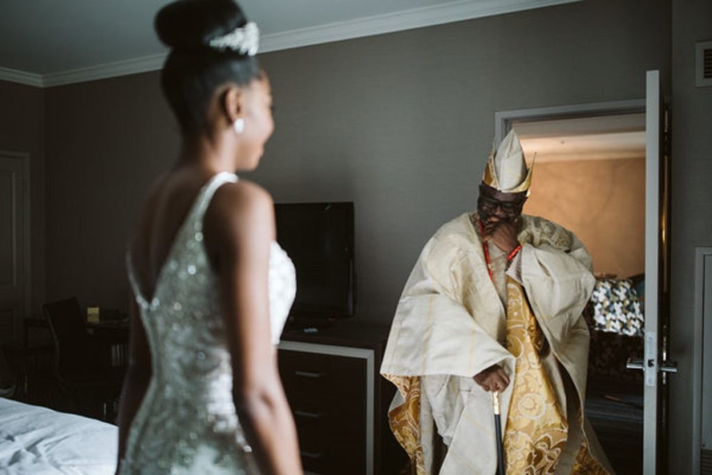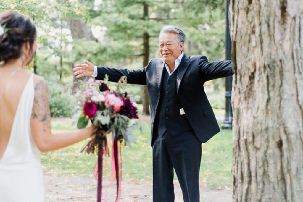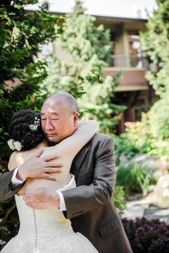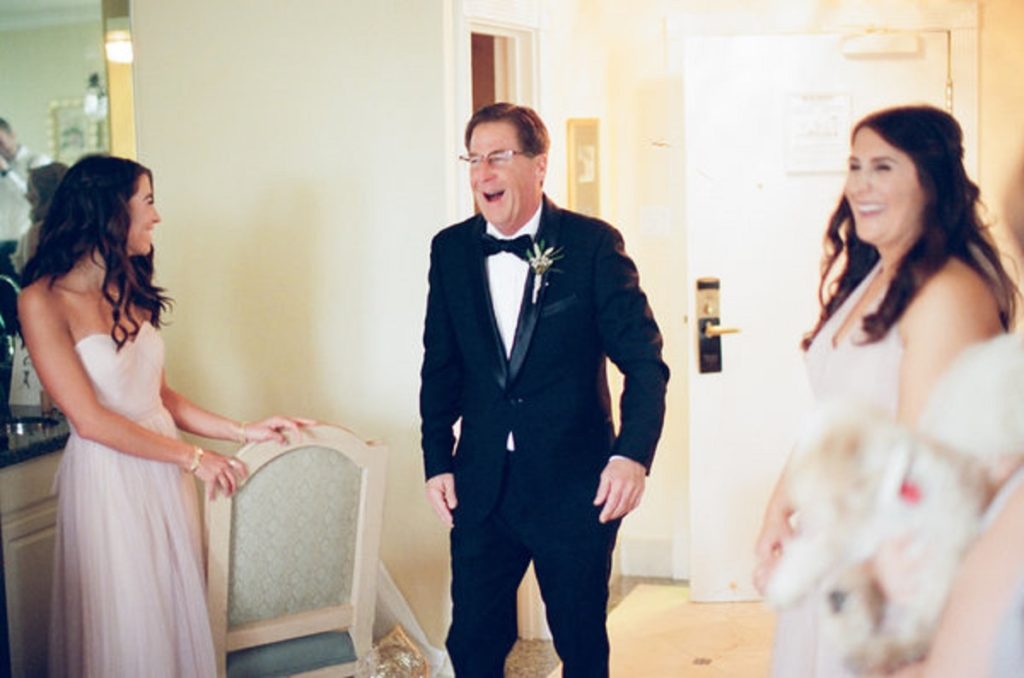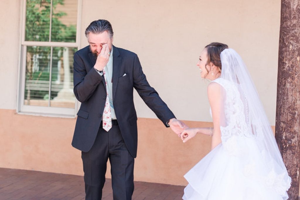 В важный день многие невесты делают фотографии первого впечатления родителей, которые впервые видят их в подвенечном платье. И, как и следовало ожидать, все снимки очень эмоциональные.