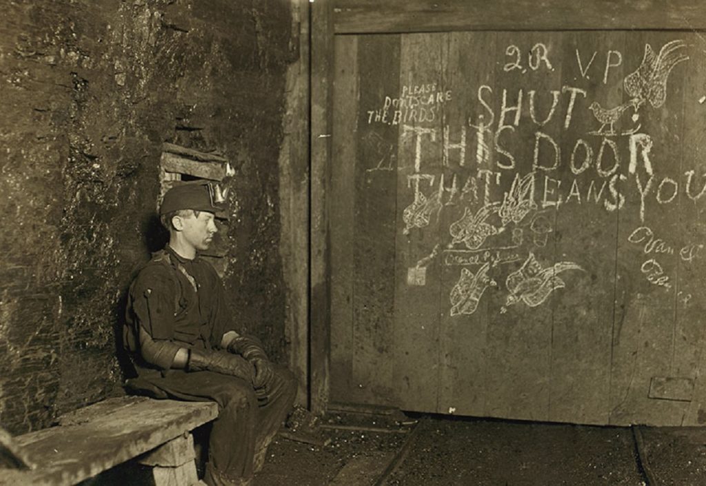 10. 15-летний Вэнс работает на угольной шахте. Его работа состоит в том, чтобы на протяжении 10 часов открывать и закрывать эту дверь.