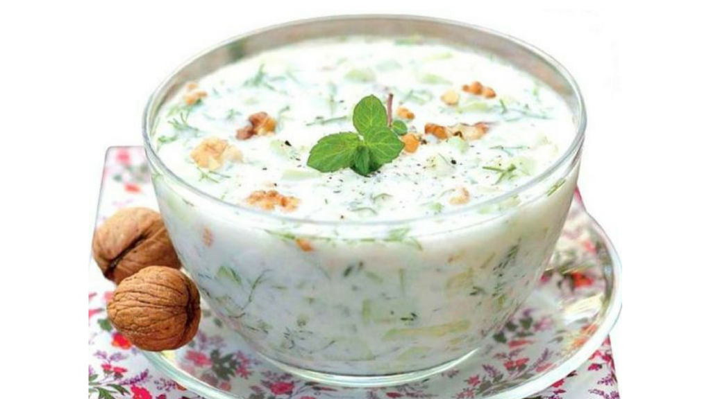 Для этого легкого и освежающего блюда вам понадобится несладкий йогурт, огурцы и грецкие орехи. Если йогурт слишком густой, его можно разбавить минеральной слабо газированной водой. Приправьте по вкусу солью, перцем и укропом – окрошка по-болгарски готова!