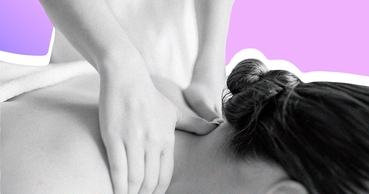 Положите одну руку на плечо. Поместите часть ладони между лопатками. Затем выполняйте длинные движения, применяя давление.