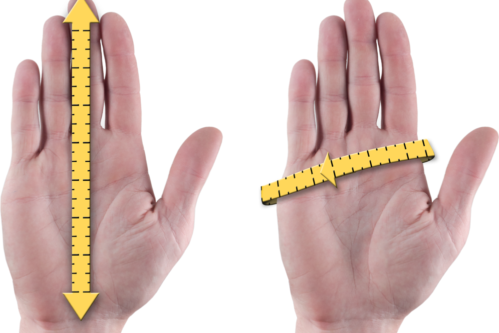 Измерять нужно доминирующую руку. То есть если вы правша – правую, если левша – левую. Связано это с тем, что обычно доминирующая рука больше. Для измерения вам понадобится рулетка. Обмотайте её вокруг ладони под выпирающими суставными косточками («подушечками»). Чтобы получить окружность в дюймах, полученный результат (в см) нужно разделить на 2,54. Вы получите обхват в дюймах.