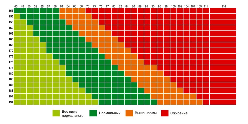 Расчет ИМТ очень прост. Он равен вашему весу в килограммах, деленному на квадрат вашего роста в метрах. Для облегчения расчёта можно воспользоваться табличкой: