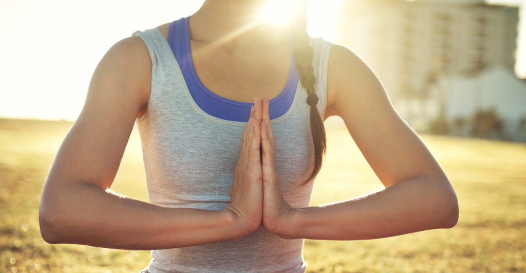 Эта поза снимает напряжение в запястьях. Выполнение: станьте прямо, согните локти, затем сомкните ладони перед грудью. Оставайтесь в таком положении 30 секунд.
