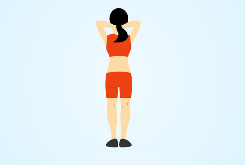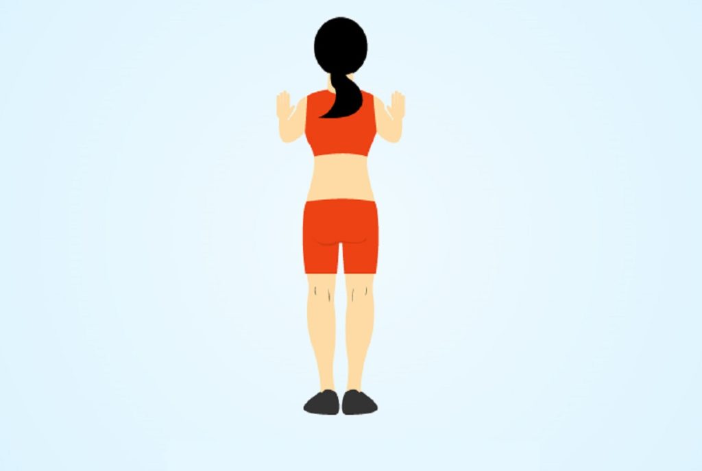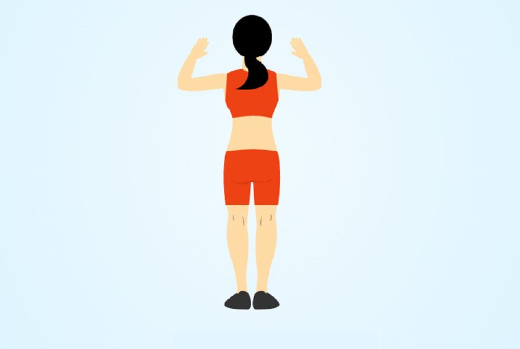 - Теперь потяните руки назад, сожмите плечи вместе и задержитесь в этом положении на 2 секунды.