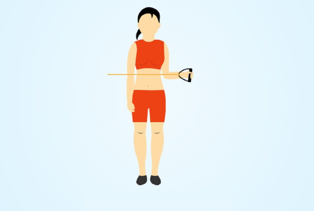 - Теперь отведите свою левую руку в сторону, чтобы растянулись мышцы. Повторите 10 раз на обе стороны.