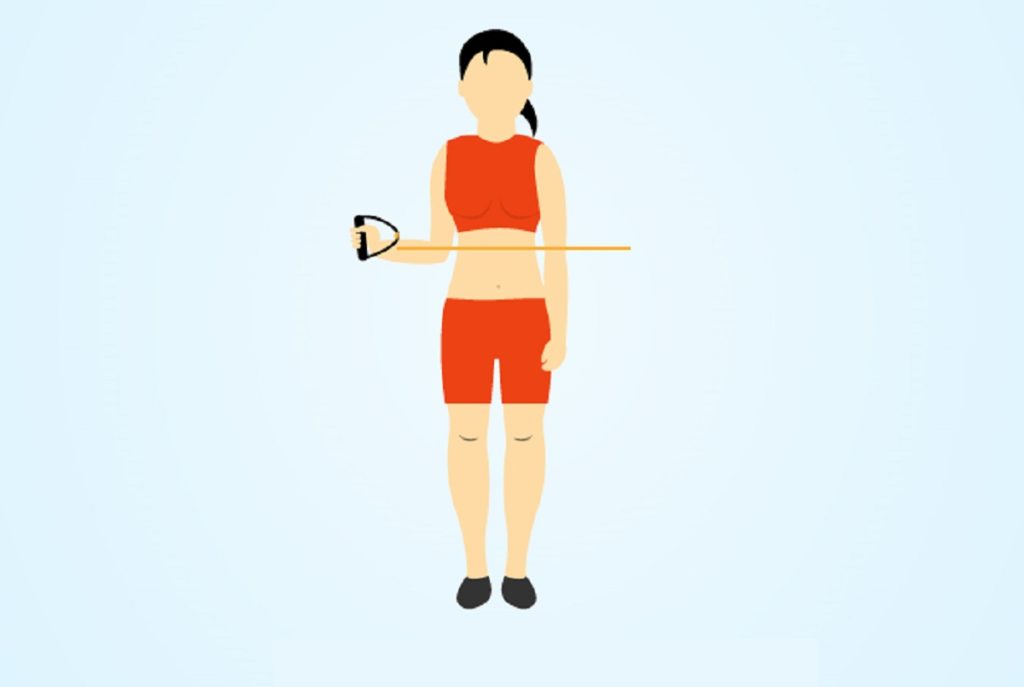 - Возьмите в левую руку полосу сопротивления. Другой конец полосы должен быть привязан к подвижному объекту.