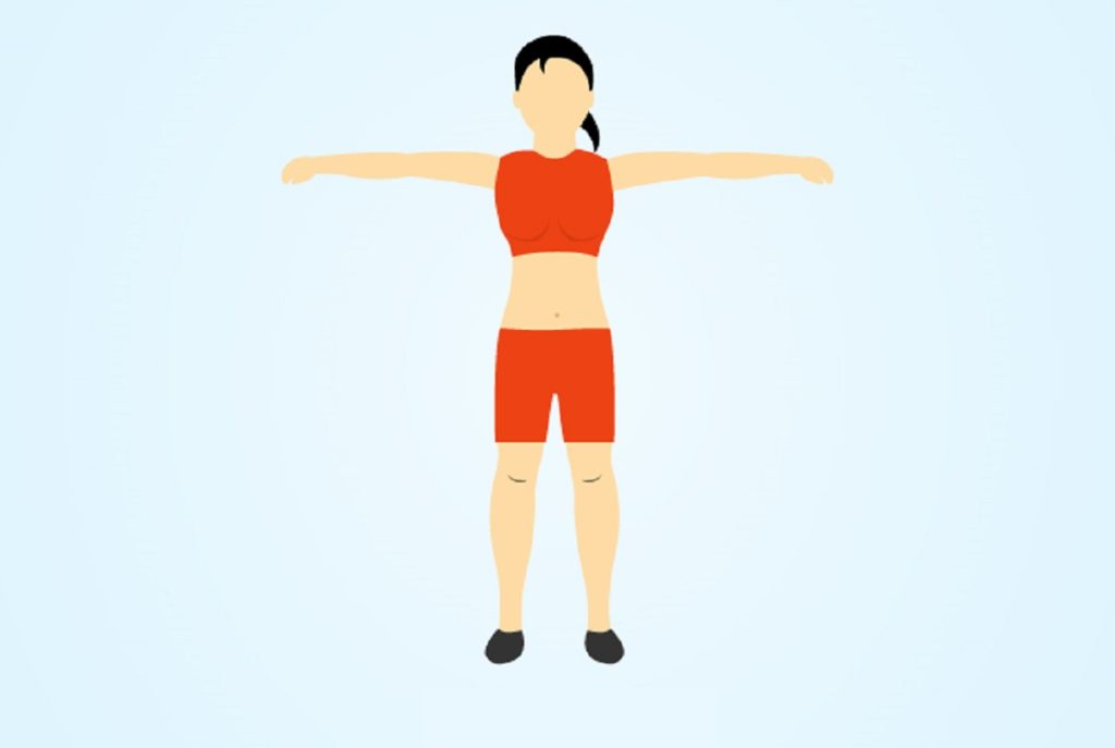 - Теперь поднимите руки вверх, чтобы они соответствовали прямой линии с плечами. Не поднимайте руки выше уровня плеч.