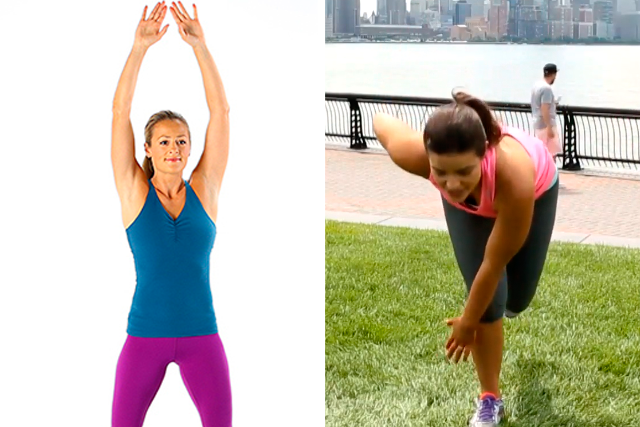 Встаньте прямо, правая рука на бедре, а левая нога поднята и согнута в колене. Сделайте скручивание и коснитесь правого колена левой рукой. Продолжайте делать 10 повторений, прежде чем менять сторону. Сделайте 3 сета.