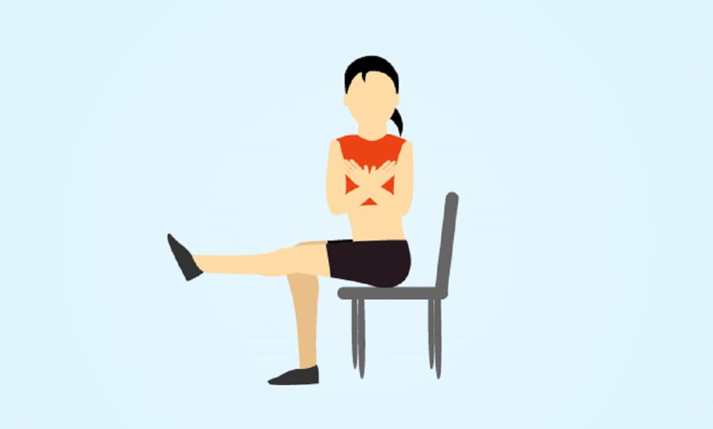 - Сядьте на край стула и скрестите руки на груди.