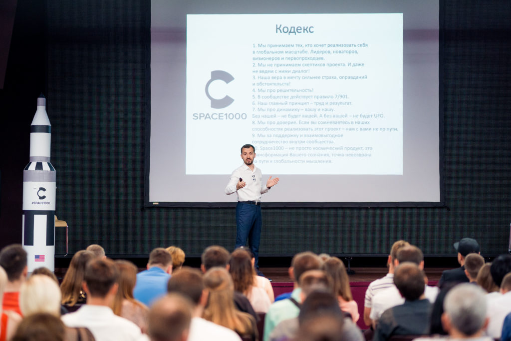 На встрече Денис презентовал проект и объяснил, почему космос может быть доступен обычному человеку. Также Денис рассказал, как научиться мыслить и действовать глобально. Он отметил, что два года назад не знал о космической индустрии ничего — сознание перевернула поездка в США. После нее Руденко основал международную компанию Decron Club, которая запускает банковские слитки драгоценных металлов в космос. Сейчас у компании 8 инвесторов. Они предоставили более $400 000 финансирования. Space1000 — это проект Decron Club.