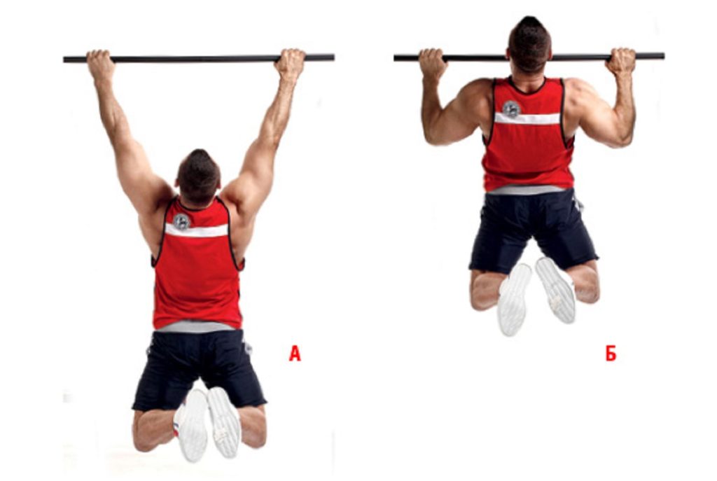 Выполните максимальное количество раз. Беритесь за перекладину широким хватом. Затем плавно подтягиваете тело вверх так, чтобы коснуться подбородком турника. Медленно опускайтесь вниз.