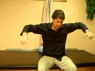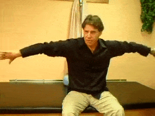 Для этого упражнения раскиньте руки в стороны и согните в локтях. Начните поочередно опускать и поднимать руки, оставляя локти в одном и том же положении. Повторите 10 раз.