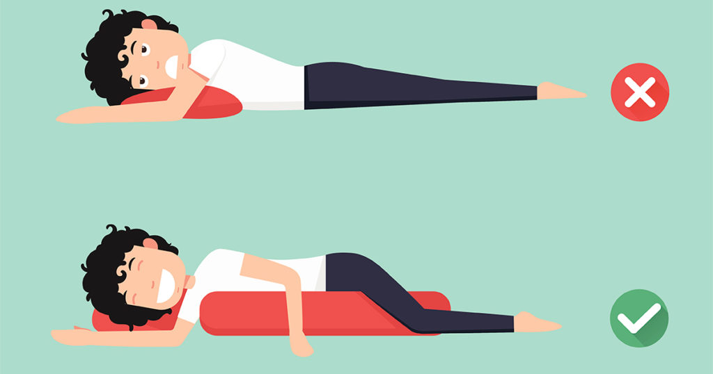 - Худшая – на животе или на спине, не подложив при этом под колени подушку.
