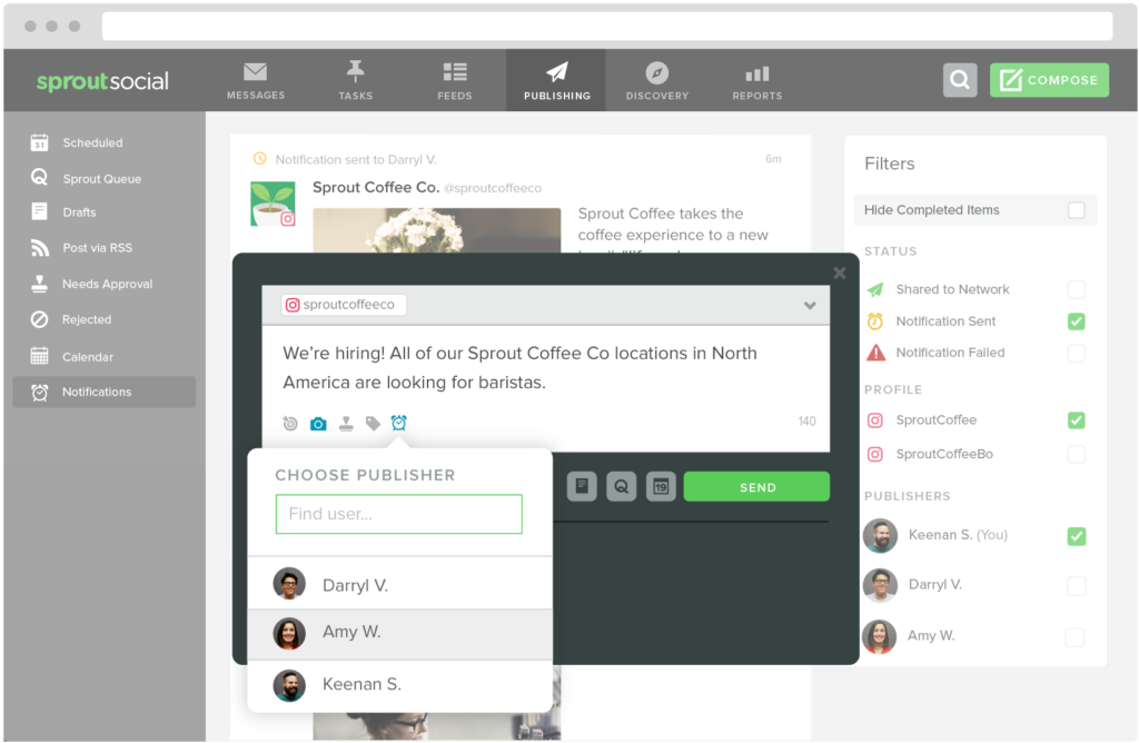 Планирование публикации постов в Instagram помогает вам не отвлекаться от других своих дел. Программа сама опубликует приготовленные заранее вами посты. Sprout объединяет все ваши уведомления в Instagram, поэтому вы никогда не пропустите ни один комментарий от подписчика. Вы также получите аналитику лучших постов в Instagram, что подарит вам возможность понимать, какой ваш контент наиболее популярен.