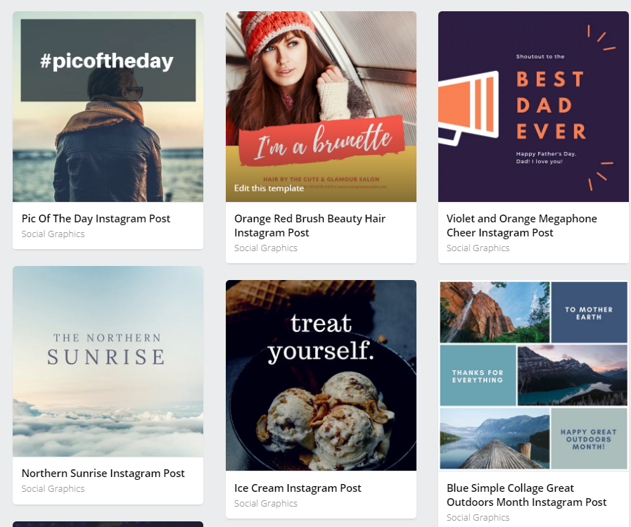 Canva предлагает вам массу шаблонов для создания вдохновляющих изображений, фотографий с текстом, объявлений и прочих постов в соцсетях.