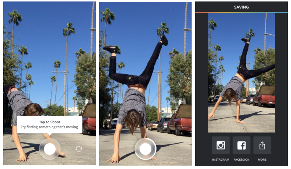 Hyperlapse позволяет вам снимать и публиковать ускоренные видео. Вы можете выбрать разрешение видео, частоту кадров и, собственно, степень ускорения.