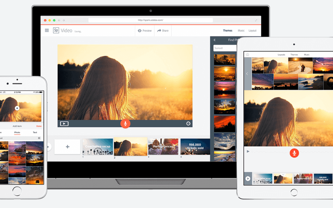 Adobe Spark работает как на мобильных устройствах, так и на компьютере. Он очень прост в использовании и помогает публиковать привлекательный визуальный контент.