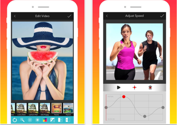 Это ещё одно приложение, которое поможет вам ускорить видео. Вы также сможете наложить музыку на видео, использовать фильтры и возможность обратного воспроизведения видео.