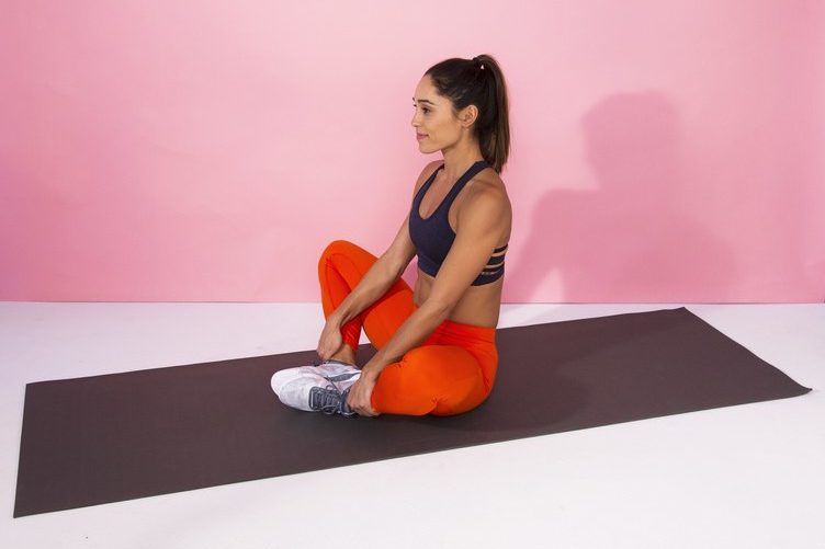 Сядьте на пол, выпрямив спину и вытянув ноги перед собой. Согните ноги в коленях и придвиньте стопы к бёдрам. Сделайте так, чтобы ступни касались друг друга. Положите руки на лодыжки. Вытяните верхнюю часть тела вперёд и продолжайте опускать колени к полу. Задержитесь в этом положении на 30 секунд-2 минуты.