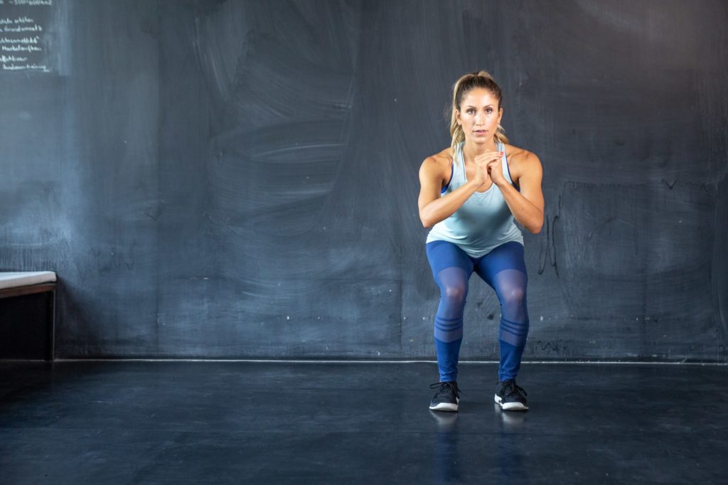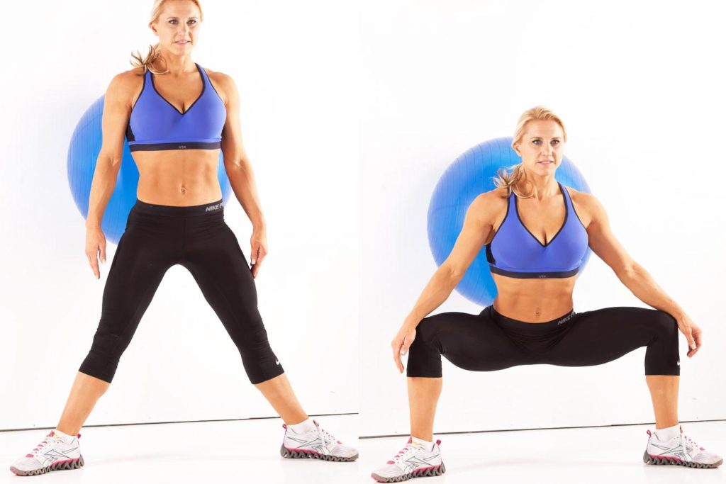 Встаньте прямо, ноги поставьте на ширину плеч. Носки ног вывернуты наружу. Держите руки, согнутые в локтях, впереди, чтобы удерживать равновесие. Сделайте присед, опустив тело до тех пор, пока ягодицы не окажутся прямо над ногами. Сожмите ягодицы и бёдра, возвращаясь в исходное положение.