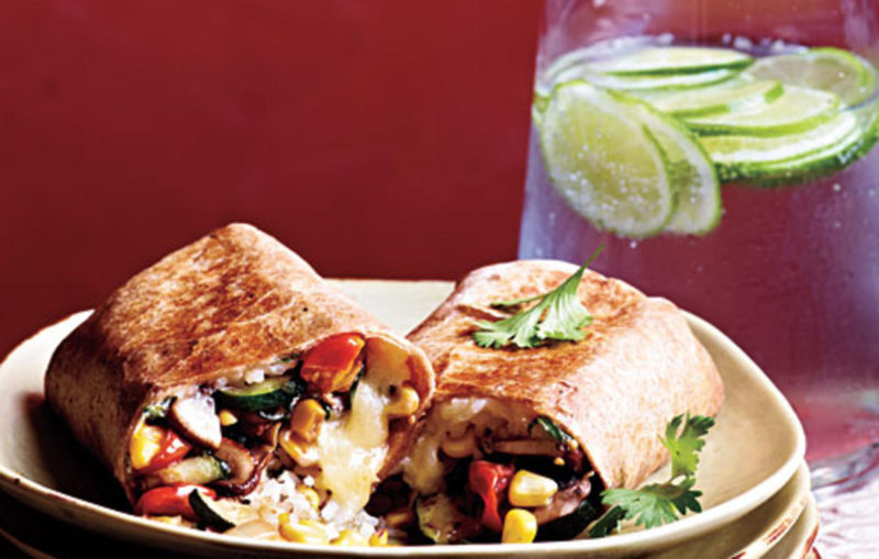 Включите духовку на 180 градусов. Тем временем нагрейте сковороду, налейте на нее растительное масло. Поджарьте на сковороде куриное филе и перец. Смешайте курицу, размягченное авокадо, сок лимона, измельченные томаты, кукурузу, соус барбекю и салат. Добавьте начинку в тортилью, посыпьте ее сыром, заверните и отправьте в духовку на 10 минут.