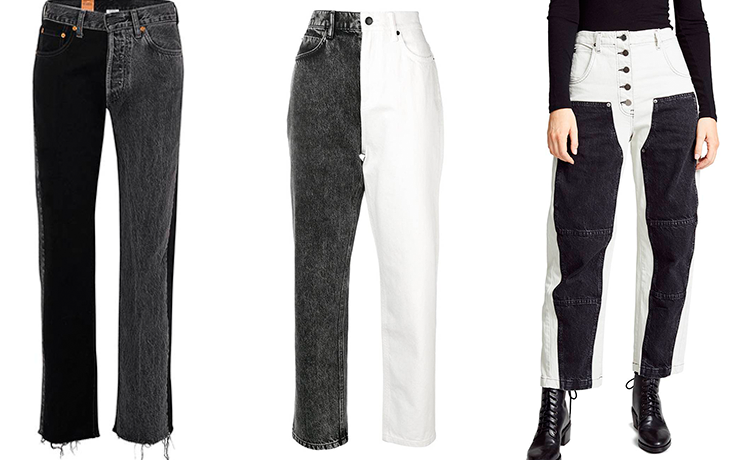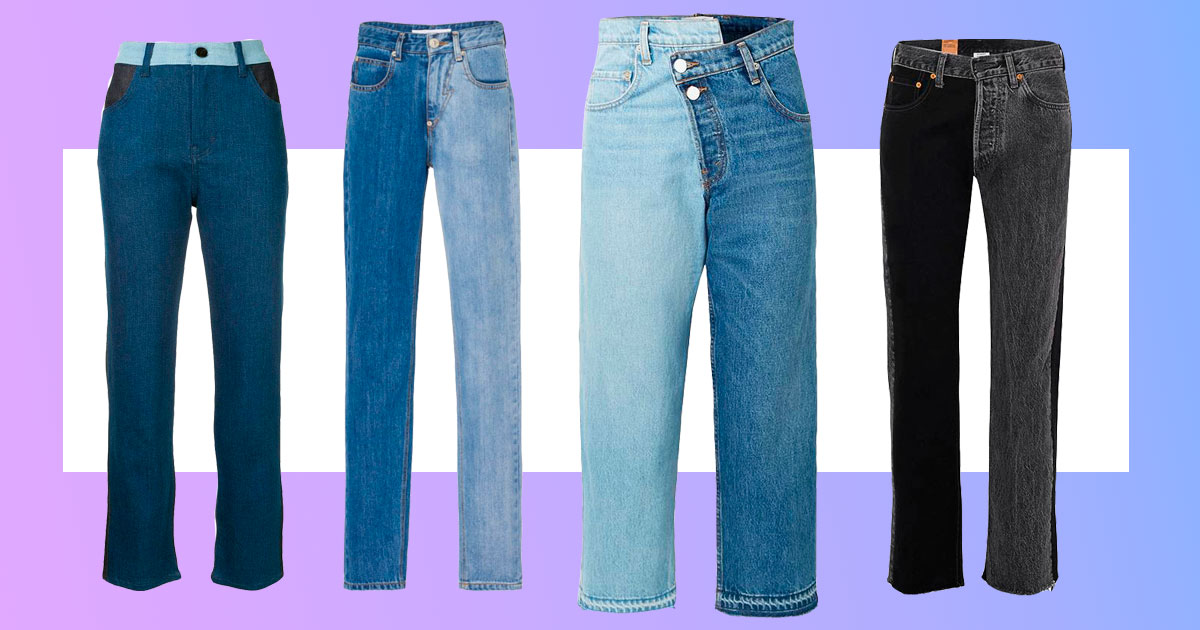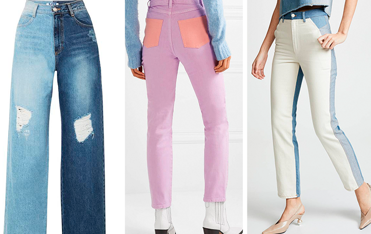 Конечно, мы не хотим заставить вас выбросить джинсы скинни и вместо них купить новомодные в этом году модели джинсов. Решение остаётся за вами. Просто посмотрите на эти шикарные джинсы, которые стали хитом в 2019, – прямые джинсы с колор блок (сочетание нескольких цветов).