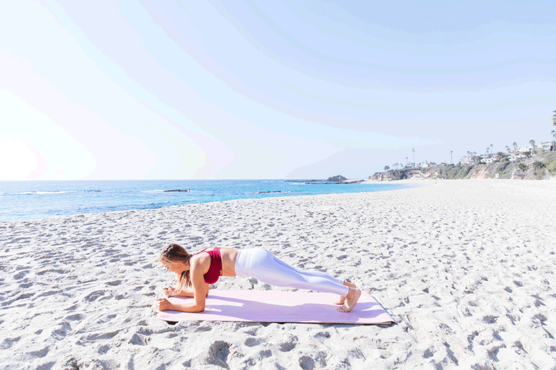 Планка по-армейски. Станьте в планку на локтях. Затем, поменяйте положение на высокую планку, заменив локти ладонями. Опуститесь назад на локти. Во время упражнения держите бедра собранными и напряженными.