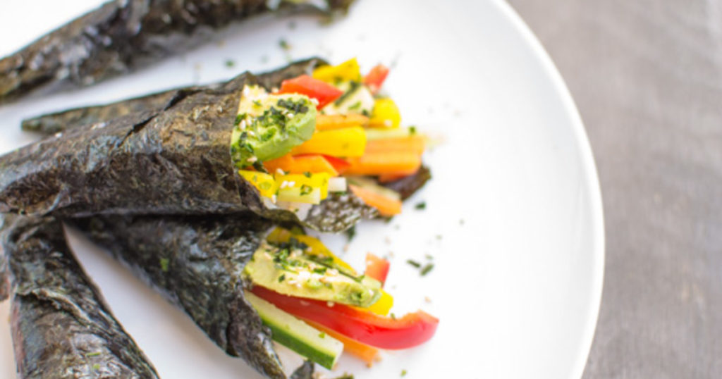 - Положите сверху овощи и немного приправы по желанию, а затем сверните ролл.