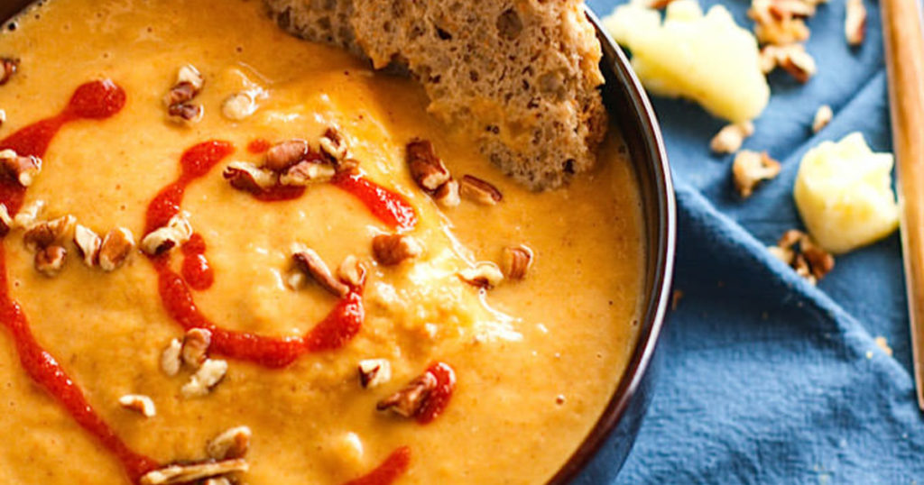 - Перелейте получившийся крем-суп в глубокую емкость и добавьте оливковое масло, кокосовое молоко, арахисовое масло и кленовый сироп.