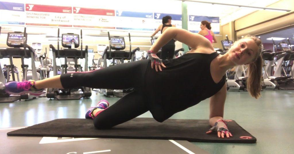 Это упражнение прокачивает не только косые мышцы живота и убирает бока, но также укрепляет ягодицы.