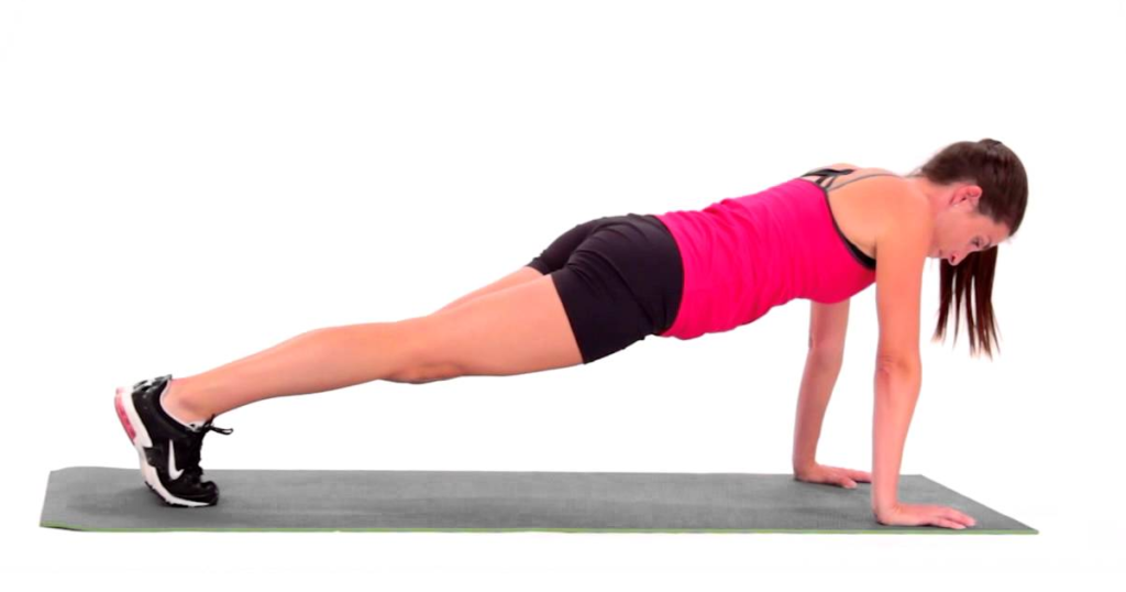 Примите упор на прямые руки. Все ваше тело от затылка до пяток должно образовывать прямую линию. Ноги стоят вместе — носки упираются в пол. Руки стоят на ширине плеч либо немного шире, пальцы рук смотрят вперед. Согнув локти, опустите тело как можно ближе к полу. Задержитесь в нижней позиции несколько секунд. Вернитесь в исходное положение на выдохе. Сделайте пять повторов.