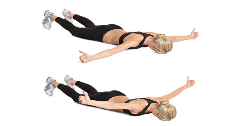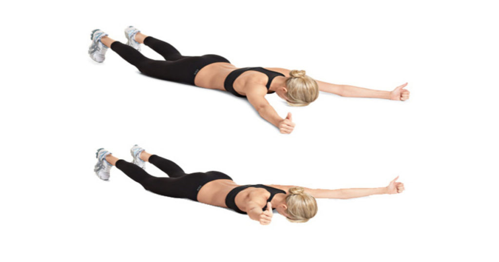 Для начала лягте на живот, сделав упор лбом о пол. Выставите руки вперед так, чтобы ваше тело напоминало букву Y. Ладони должны смотреть друг на друга. Поднимите большие пальцы вверх и оторвите руки от пола, как показано на картинке.