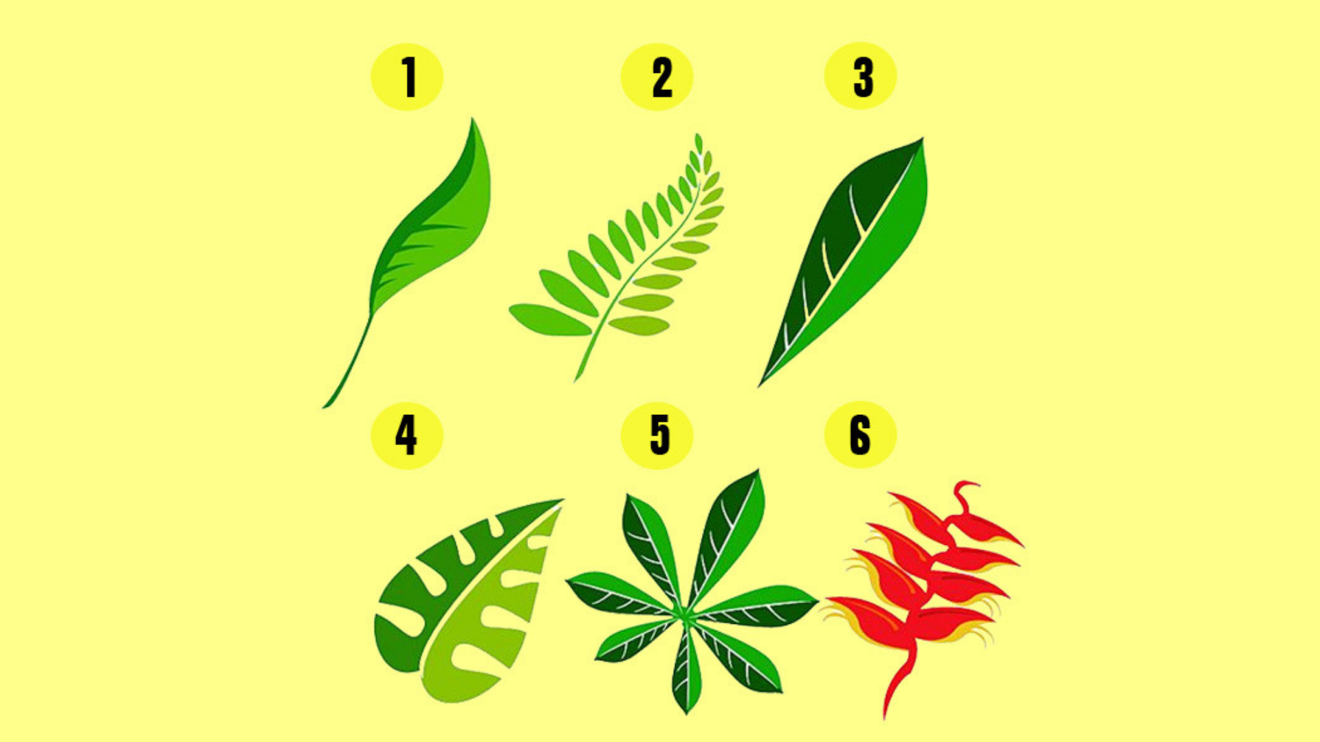 Перед вами шесть видов листьев: вам нужно посмотреть на них и выбрать тот, который вам больше всего нравится.