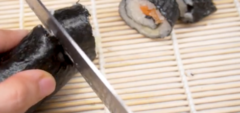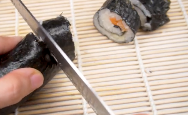 - Разрезать рулет на кусочки по 2,5–5,1 см. Нож нужно смачивать перед каждым разрезом.