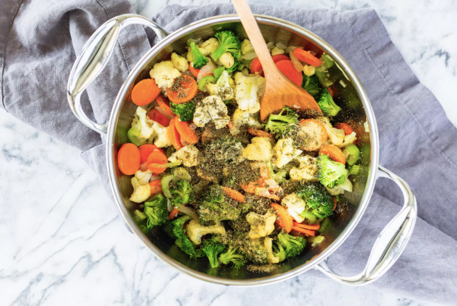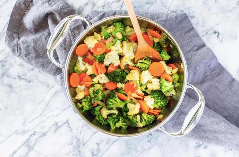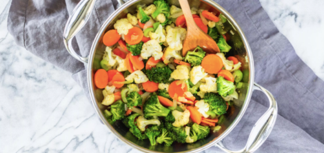 - Добавить на ваш выбор смешанные нарезанные овощи и нагреть еще 1-2 минуты. Не позволять им коричневеть.