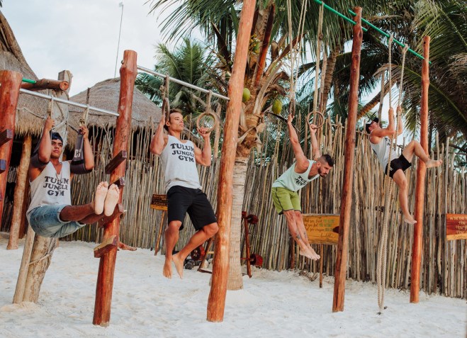 Если вы не были в Мексике, отправляйтесь туда и побывайте в крошечном пляжном городке Тулум. Там вы сможете не только насладиться отдыхом мирового класса, но позаниматься в открытом спортивном клубе под названием Flintstones, известном как Tulum Jungle Gym.