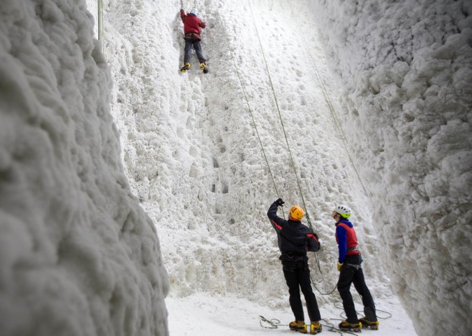 Ледяная стена тренажерного зала состоит из 500 тонн снега и льда, высота которых составляет около 49 футов. Ледяная стена также имеет уровнисложностей от новичка до специалиста, что делает крытый скалолазание отличным для всех. Альпинисты могут преодолеть стену с инструктором или самостоятельно, исходя из своего предыдущего опыта. После восхождения гостям также предлагается взять пиво и гриль в баре тренажерного зала.